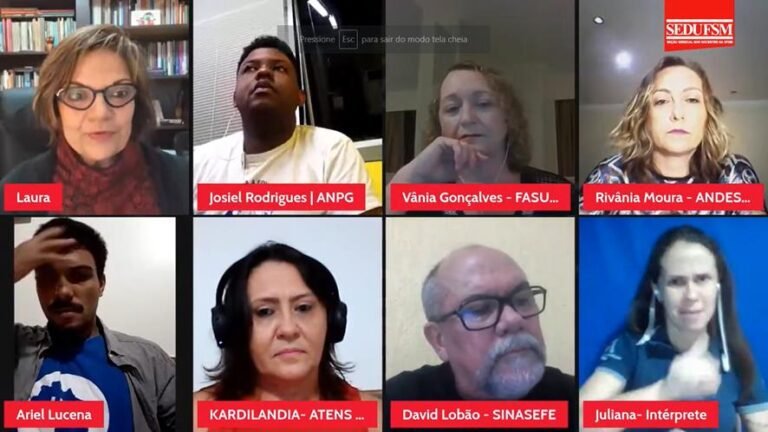Kardilândia Mendes, que falou em nome da ATENS-SN, trouxe à discussão sua preocupação com a saúde mental dos servidores no retorno ao presencial, e questionou: ‘’Será que o governo federal está preocupado com a volta dos servidores? […] Porque nós temos vários funcionários e professores com depressão, por conta da falta de contato. Há várias nuances com relação ao trabalho remoto. E o que o governo federal está fazendo para que esses professores tenham assistência, por meio de psicólogos, psiquiatras e médicos?”.