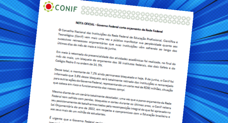Os impactos dos cortes orçamentários para a Rede Federal de Educação foram destaque de nota emitida pelo Conselho Nacional das Instituições da Rede Federal de Educação Profissional, Científica e Tecnológica (Conif) no último dia 9 de junho. O Conif é a entidade que representa as Reitorias dos Institutos Federais de todo o país.