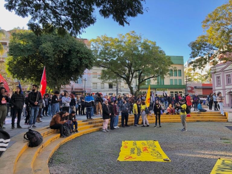 Na tarde da última quinta-feira, 11 de agosto, o centro de Santa Maria recebeu mais um ato Fora Bolsonaro, organizado por movimentos estudantis e sociais, em conjunto com sindicatos da região. Para protestar em defesa da educação pública de qualidade e do sistema democrático, as entidades escolheram o dia 11, já que a data celebra o Dia do Estudante no Brasil. Ao final da ação, a Carta às Brasileiras e aos Brasileiros em defesa do Estado Democrático de Direito foi lida por representantes dos grupos presentes no evento.