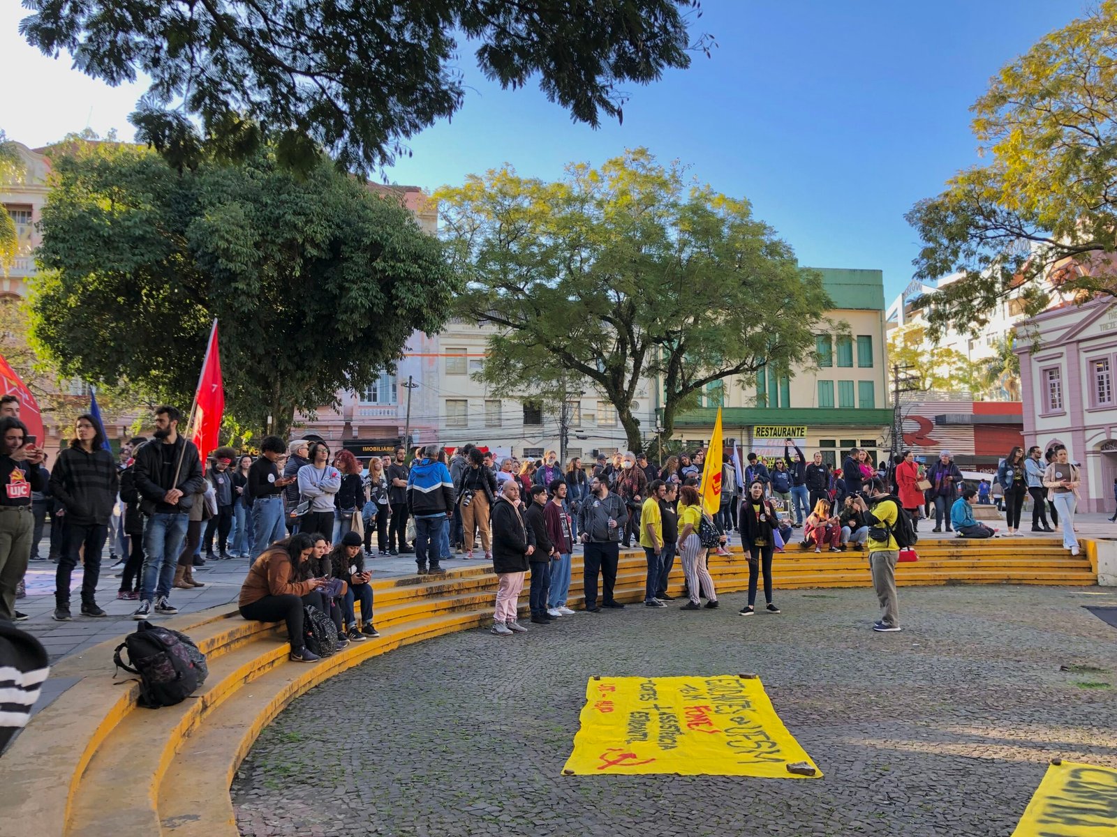 Inicialmente, houve um espaço aberto às falas dos manifestantes, em que ganharam ênfase as críticas ao desmonte da pesquisa científica e as ameaças constantes sofridas pelas urnas eleitorais e pela democracia como um todo. Além disso, também figurou nas falas o repúdio aos recorrentes cortes orçamentários pelos quais a UFSM tem passado nos últimos meses, que, dentre diversos outros prejuízos, resultou em um projeto de aumento do preço do RU de R$2,50 para cerca de R$6,00.