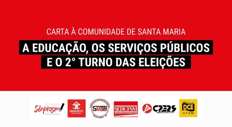 O Sinasefe, em conjunto com o Sinprosm, o Sindicato dos Municipários de Santa Maria, a Sedufsm, o CPERS e o DCE, manifesta-se contra à reeleição do atual presidente, Jair Bolsonaro (PL), em carta à comunidade de Santa Maria. O desmonte dos serviços públicos, o negacionismo científico e a desvalorização da educação pública estão entre as principais motivações para o posicionamento das entidades sindicais e estudantis.