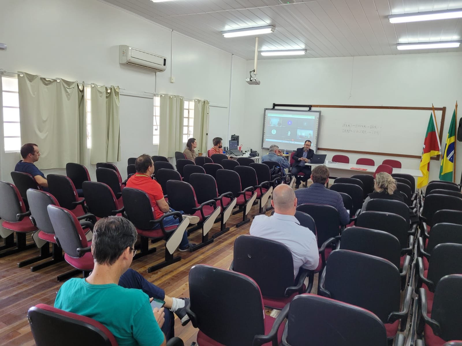 Na última segunda-feira, 7 de novembro, membros da direção do Sinasefe de Santa Maria foram à Jaguari, junto com a assessoria jurídica do sindicato (Wagner Advogados Associados), dialogar com a base sindical da região e pessoas interessadas em conhecer a entidade. O encontro, que ocorreu no auditório do Instituto Federal Farroupilha (IFFar), serviu para esclarecer dúvidas jurídicas dos servidores, além de expor as ações feitas pelo Sinasefe em 2022 e compreender as demandas locais.