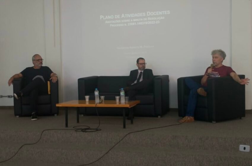 Inicialmente, Pereira expôs o histórico de ações promovidas em torno da pauta, que, desde o final de 2022, é discutida entre os sindicatos locais e a gestão universitária. Segundo informações da Reitoria, a proposta surgiu a partir da necessidade de dar um retorno concreto ao Ministério Público Federal (MPF), que tem exigido que seja feita uma fiscalização das cargas horárias de professores e professoras. Nesse sentido, a UFSM afirma que as mudanças estabelecidas pela minuta irão fornecer mais transparência à sociedade em torno do trabalho docente. Contudo, para o Sinasefe e a Sedufsm, a medida cria uma sobrecarga aos docentes, que resultará no crescimento da precarização do trabalho.