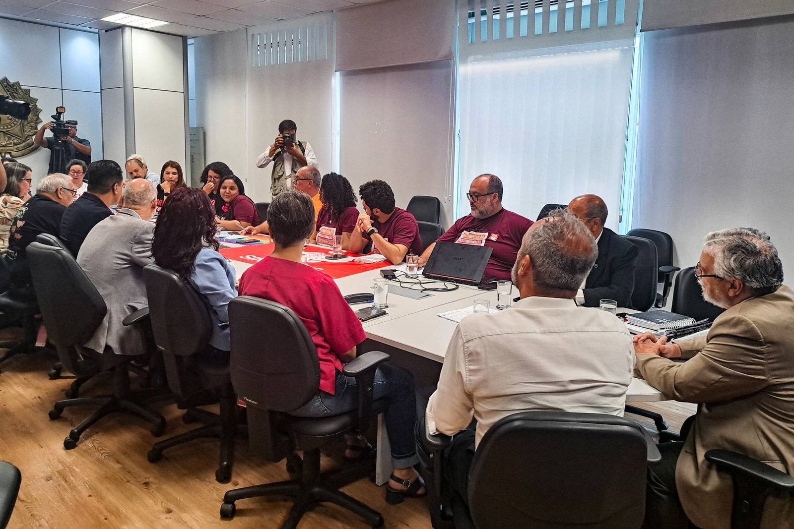 Na ocasião, o Governo apresentou proposta de reajuste para os docentes de 9 % em 2025 e 3,5% em 2026 e alteração dos steps nas classes C/DIII e D/DIV de 4% para 4,5% em janeiro de 2025.