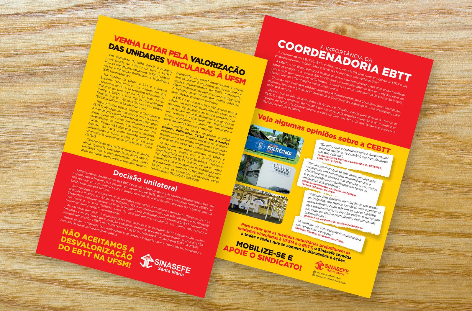 Além de produzir uma reportagem com opiniões de docentes das escolas vinculadas (ativos e aposentados): Politécnico, Colégio Técnico Industrial (CTISM) e Ipê Amarelo-, o Sinasefe SM também elaborou um material impresso para distribuir à comunidade das Unidades citadas.